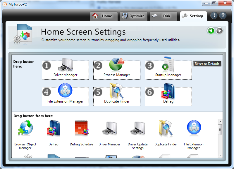 Set your preferences for the MyTurboPC Home Screen, so that you have quick and easy access to the diagnostic tools and settings you use most. |