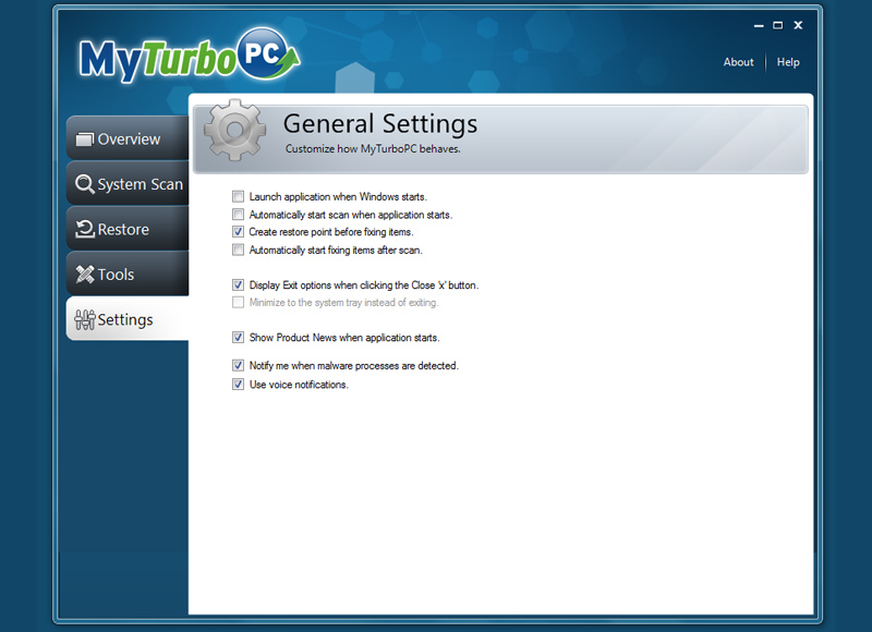 You can manage the way that MyTurboPC behaves by editing and configuring program options. |